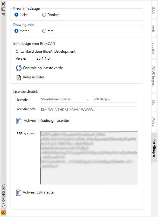 Deze tab is iets overzichtelijker gemaakt en uitgebreid met de mogelijkheid om de ESRI-sleutel te activeren voor Luchtkaarten.