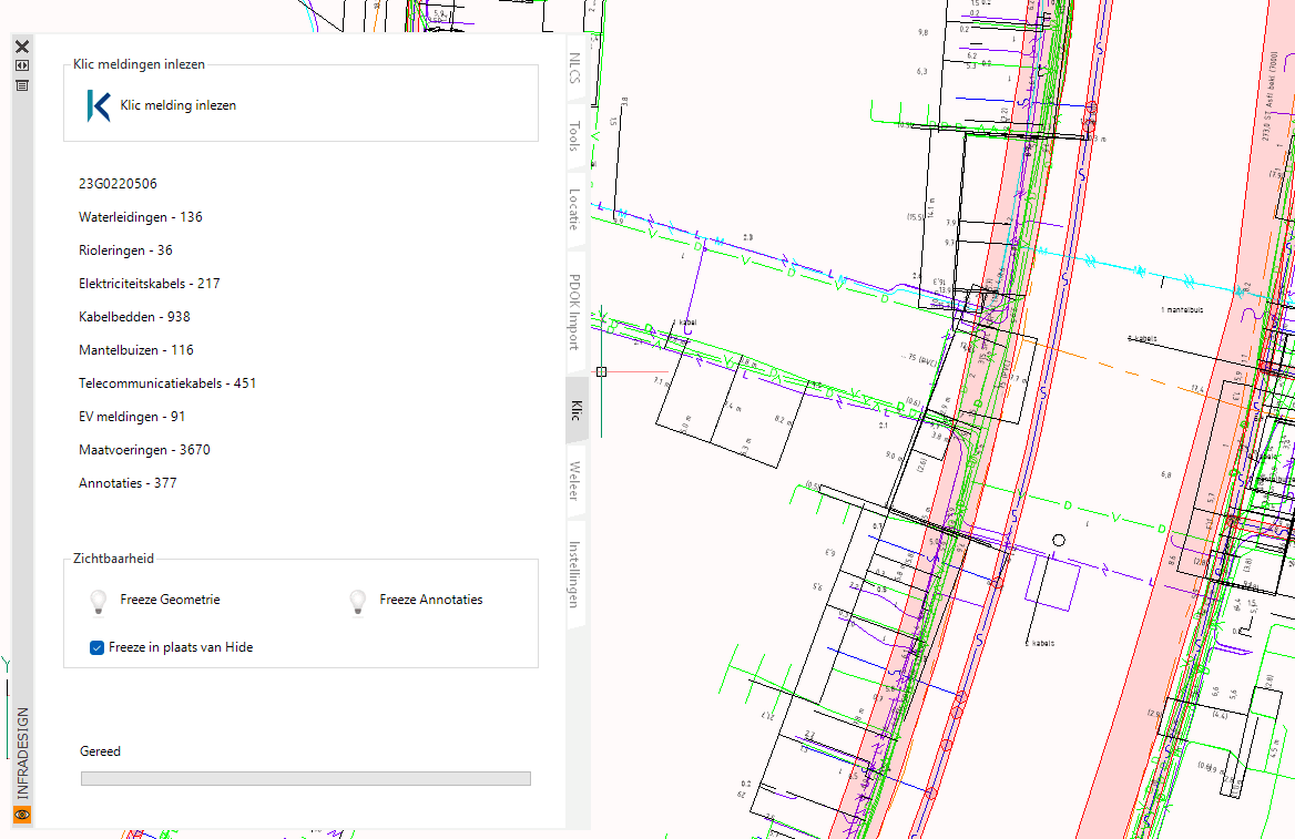 Verbetering hierin bestaat vooral met de mogelijkheid om geometrie en annotaties niet alleen uit of aan te zetten, maar ook om lagen te bevriezen. Dit is makkelijker als je bijvoorbeeld alleen de Klic -geometrie als XREF in je tekening wilt hebben.