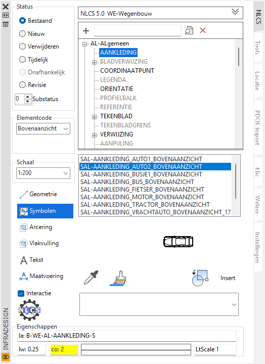 De pipet functie is verbeterd, zodat nu de eigenschappen ingesteld worden in de app en ook de Layerlijst wordt geopend op de juiste plek. Zo kun je met het kwastje eigenschappen plakken naar lijnen in de tekening, maar ook symbolen aanpassen van de een naar de ander.