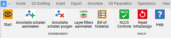 De Ribbon van Infradesign is uitgebreid, waardoor je eenvoudig de app Reset, of de tekening controleert op de NLCS eisen.